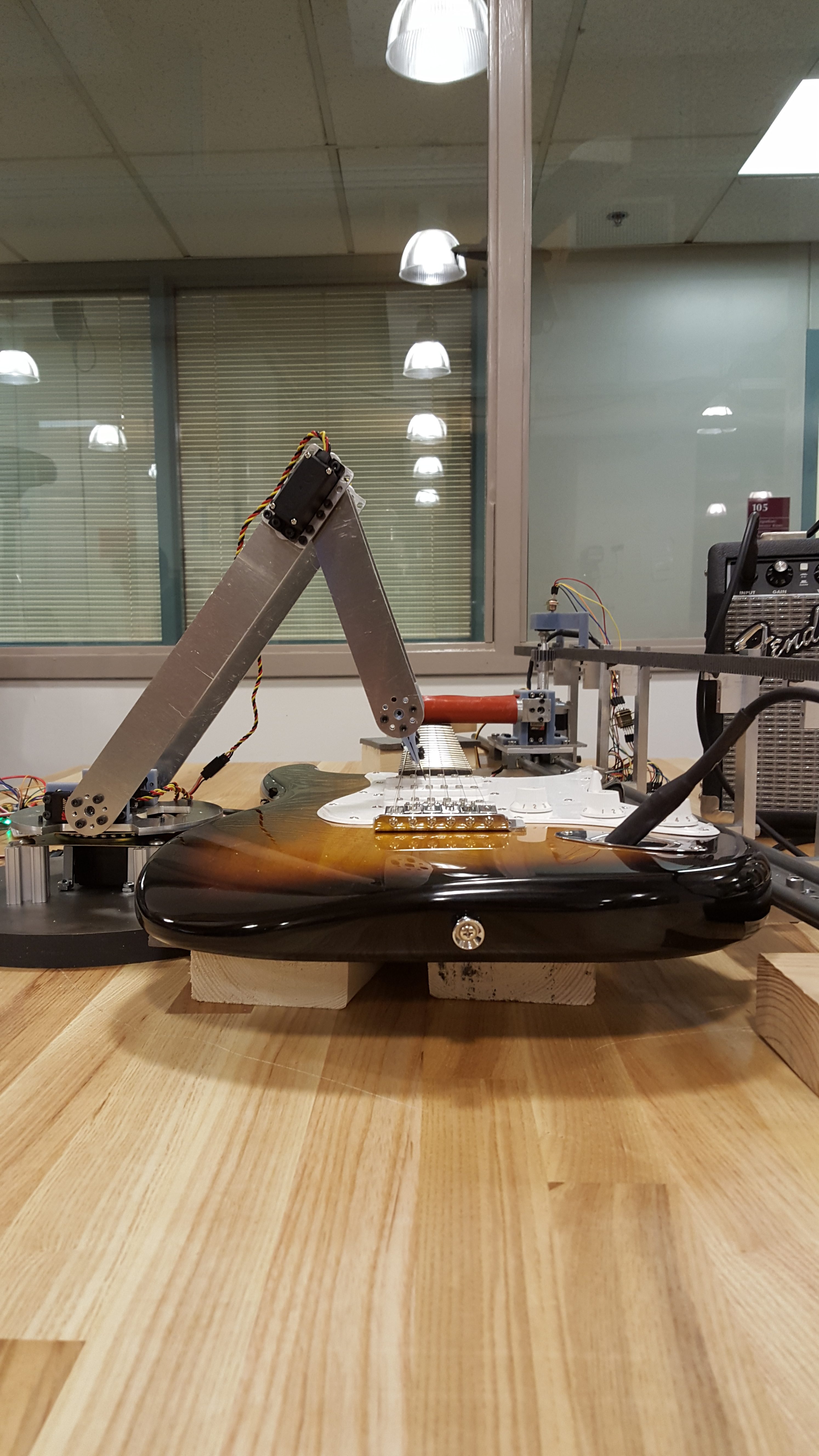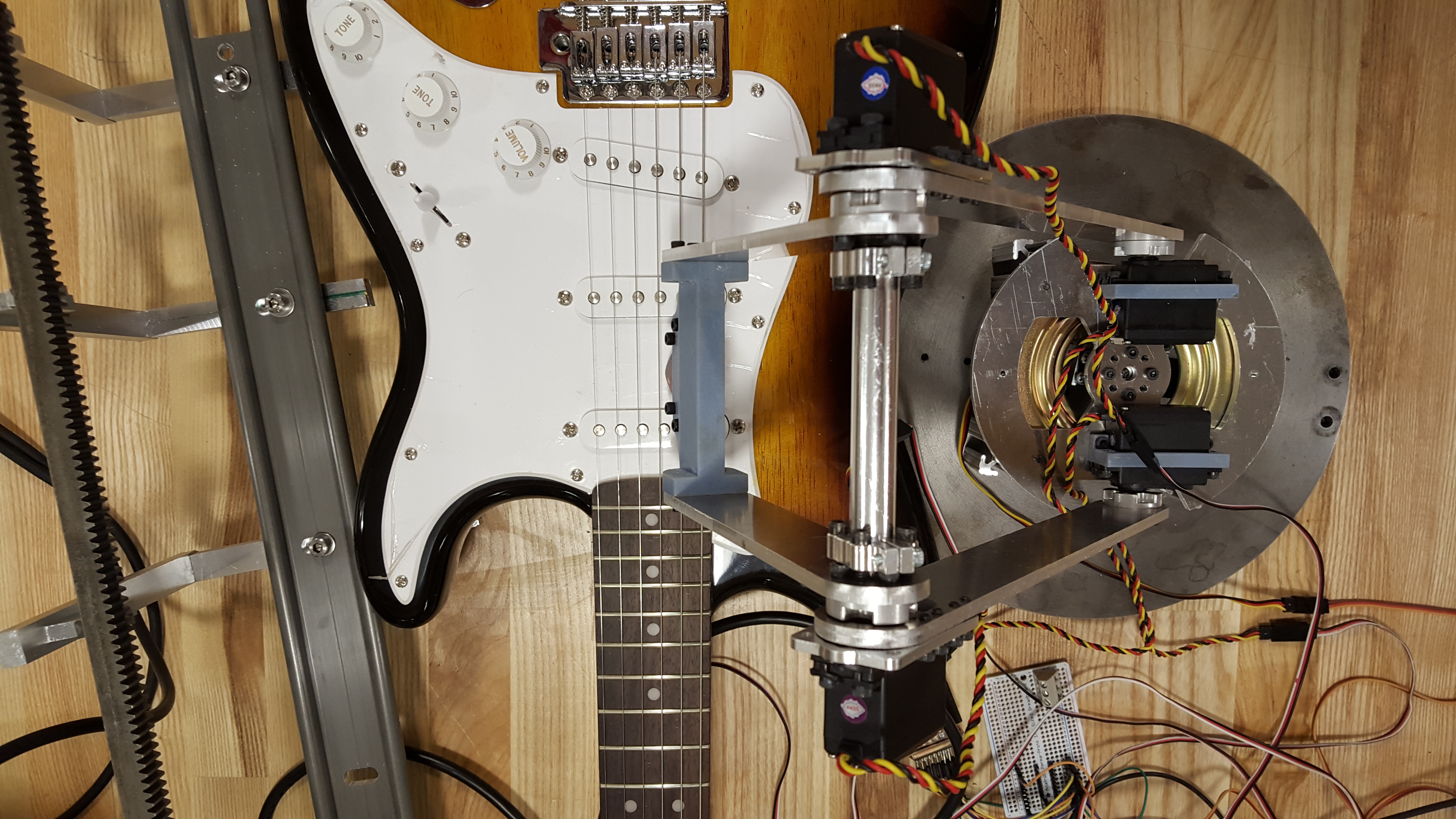 Cithara is the modern Greek word for guitar. As an exercise in robotics and systems design, cithara was a novel approach to develop a robotic arm and slider capable of playing a guitar. The arm plucked the strings while the slider held down the frets. My friend Mehmet Akbulut and I won 1st Place in the 2015 Boston University Imagineering Competition and later revised the project to improve its functionality.
